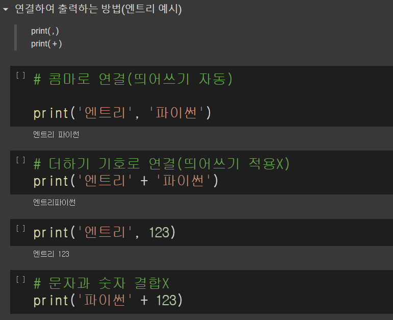 # 더하기 기호로 연결(띄어쓰기 적용X)