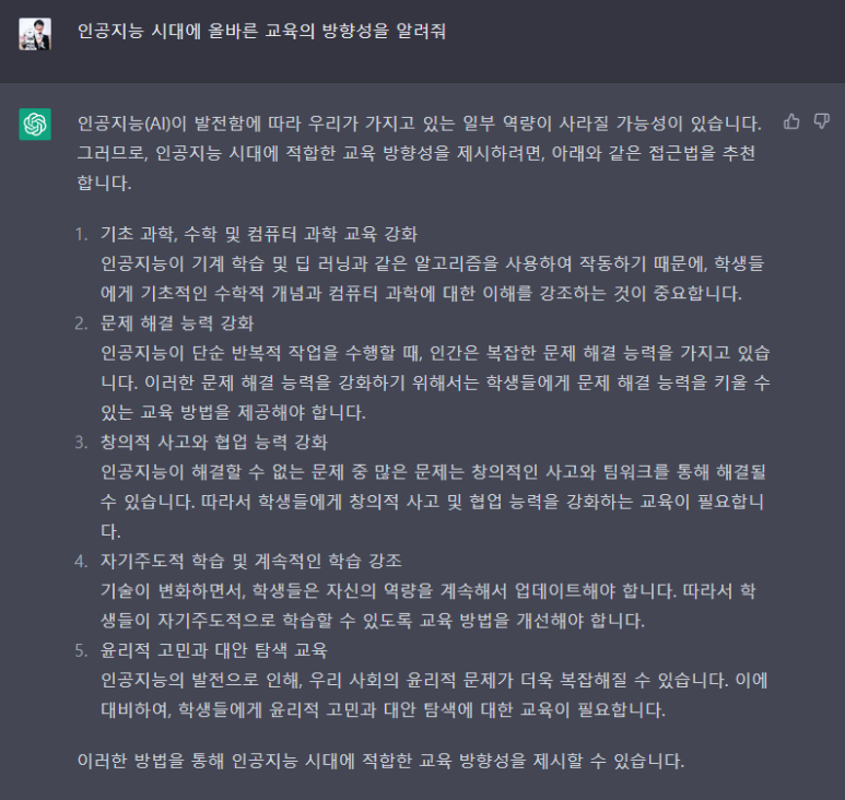 이러한 방법을 통해 인공지능 시대에 적합한 교육 방향성을 제시할 수 있습니다.