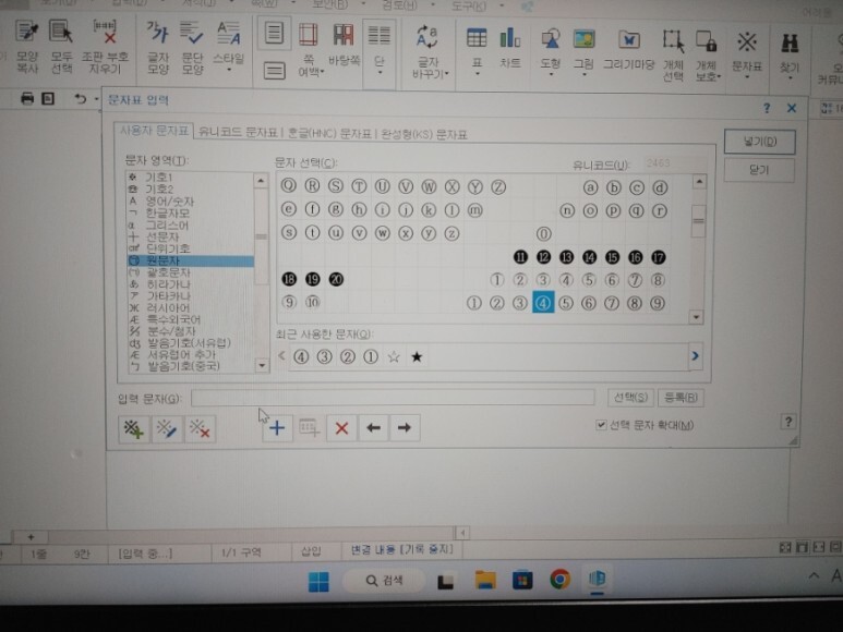 한글 프로그램 단축키가 먹히지 않는 것이다.