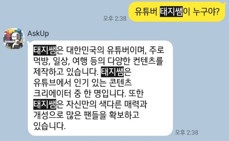 AskUP은 원래 유튜버 태지쌤을 알지 못했어요.