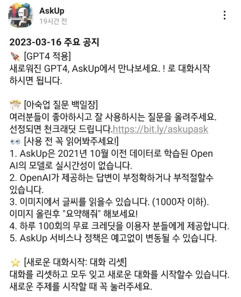 그런데 이번에 AskUp에 GPT4가 적용되었다고해요.