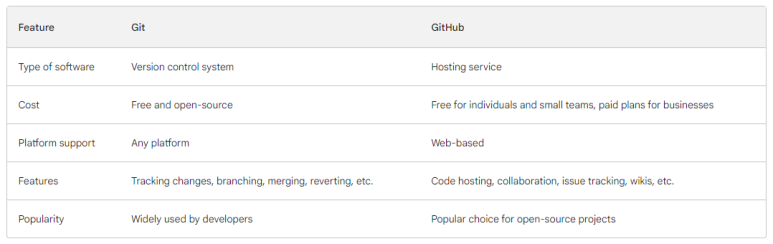 다음은 Git과 GitHub의 주요 차이점을 요약한 표입니다: