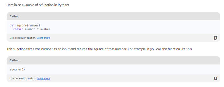 이 함수는 하나의 숫자를 입력으로 받아 해당 숫자의 제곱을 반환합니다. 예를 들어 다음과 같이 함수를 호출하면 됩니다: