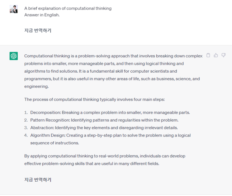 질문하게 되고 영어로 된 답변을 받게되요.