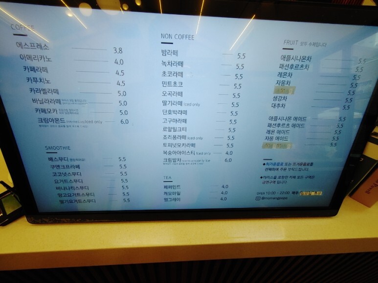 가격은... 저렴한 카페 프랜차이즈