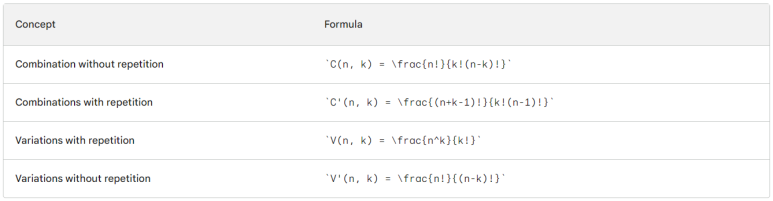 이 네 가지 개념은 조합론에서 매우 중요한 개념입니다.