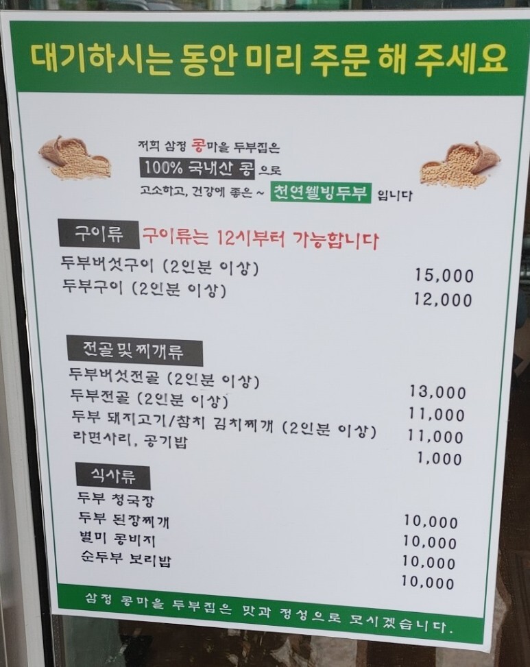 삼정콩마을가마솥두부집을 방문했어요.