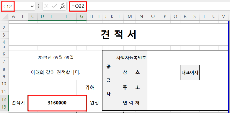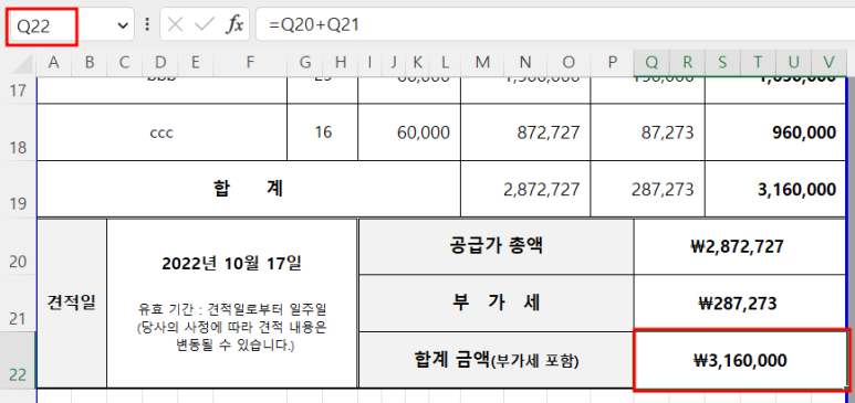 일단 합계 금액의 셀 위치를 파악해보죠.