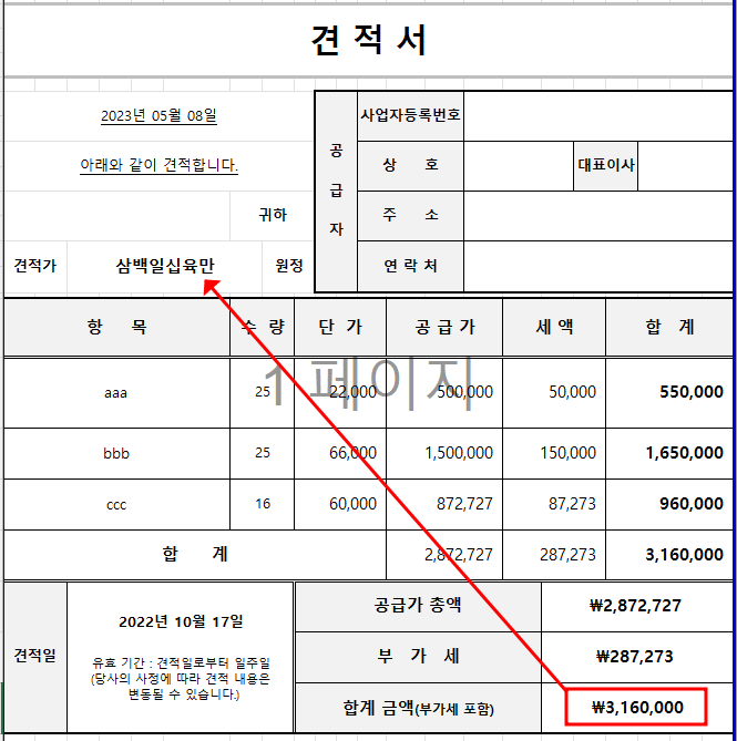 상단 견적가에 바로 한글로 바뀌는거죠.