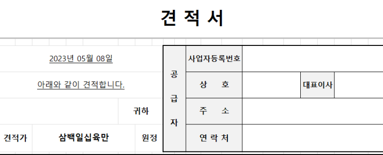 이때 상단의 견적가는 숫자가 아닌