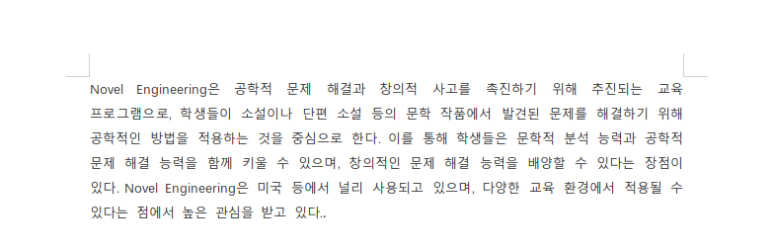 Novel Engineering은 공학적 문제 해결과 창의적 사고를 촉진하기 위해 추진되는 교육 프로그램으로, 학생들이 소설이나 단편 소설 등의 문학 작품에서 발견된 문제를 해결하기 위해 공학적인 방법을 적용하는 것을 중심으로 한다. 이를 통해 학생들은 문학적 분석 능력과 공학적 문제 해결 능력을 함께 키울 수 있으며, 창의적인 문제 해결 능력을 배양할 수 있다는 장점이 있다. Novel Engineering은 미국 등에서 널리 사용되고 있으며, 다양한 교육 환경에서 적용될 수 있다는 점에서 높은 관심을 받고 있다.