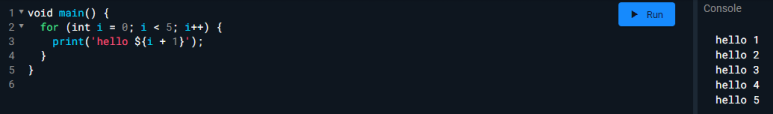 DartPad를 이용하고 있어요.