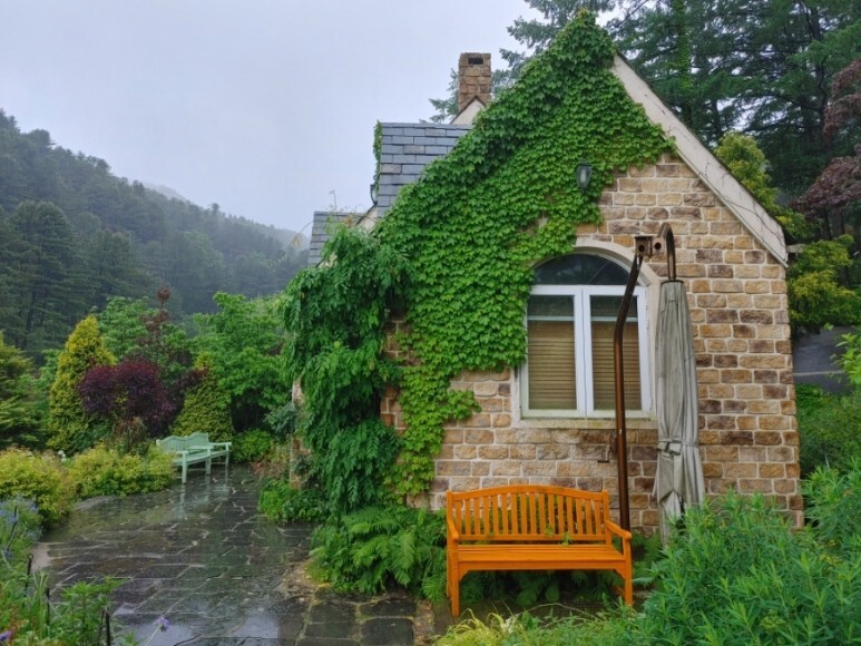 산으로 둘러싸인 유럽풍 건물도 멋있네요.