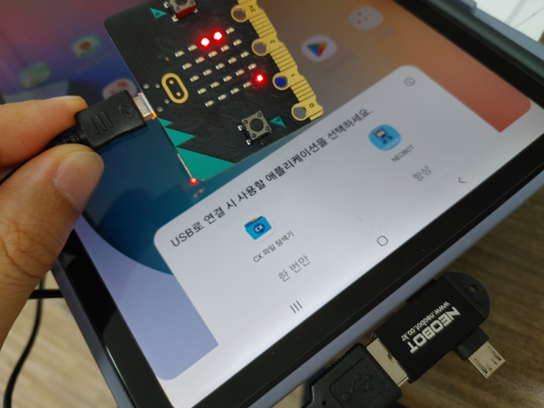저는 네오봇에 들어있는 OTG 젠더를 이용했어요.