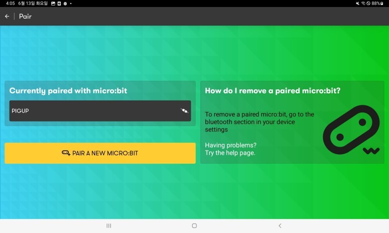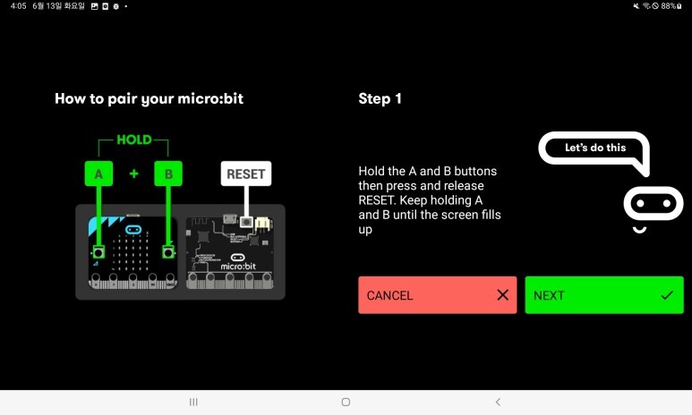 태블릿이 마이크로비트를 정상적으로 인식하구요.