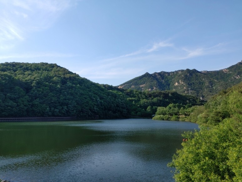 쭉 따라가보니 커다란 저수지가 나타났어요.