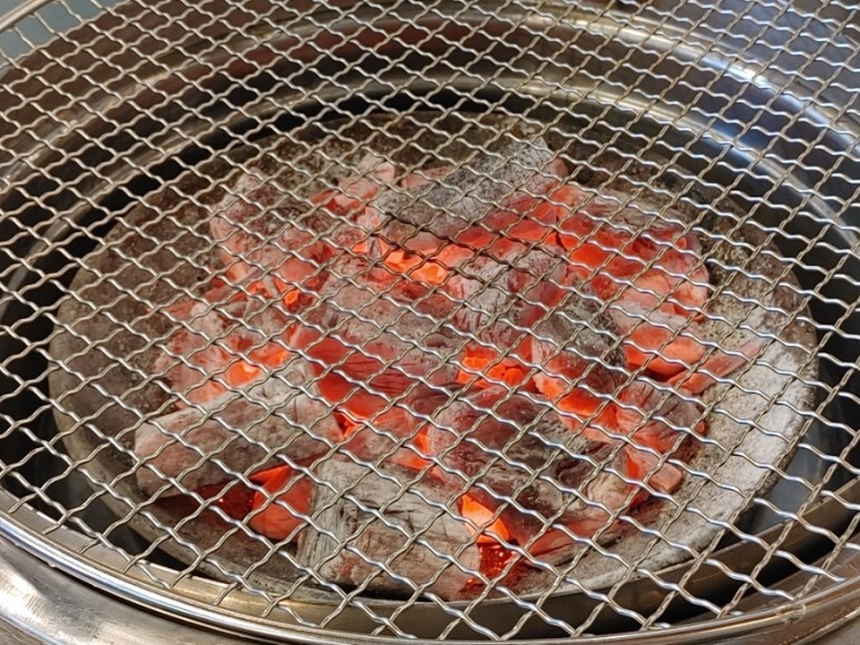 숯불과 함께 고기 등장~