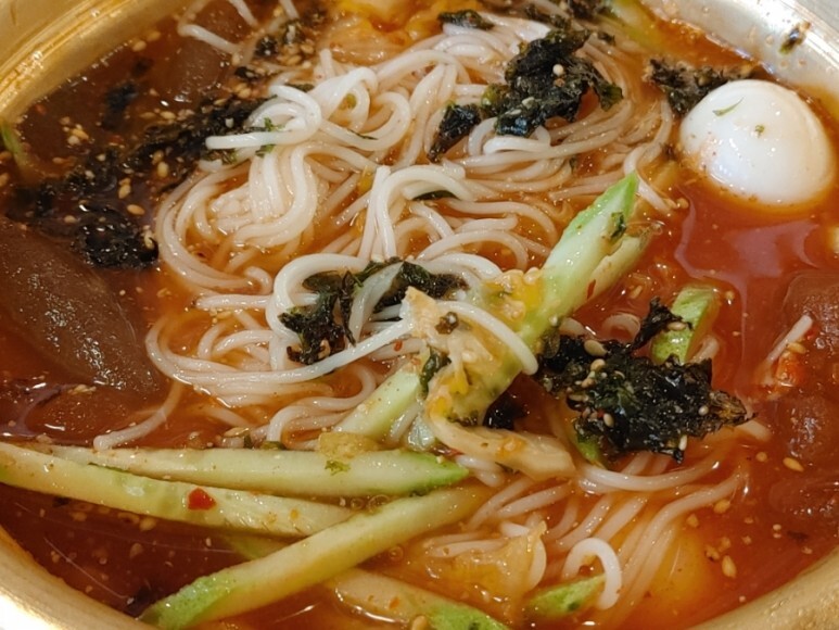 저도 김치말이 국수를 주문해봤어요.