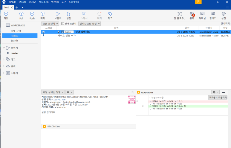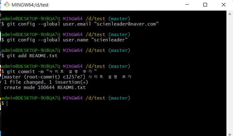 동일한 내용을 CLI기반 Git Bash로 복습하면