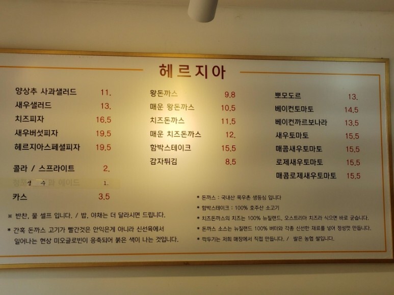 메뉴판에 헤르지아란 이름이 보이죠?