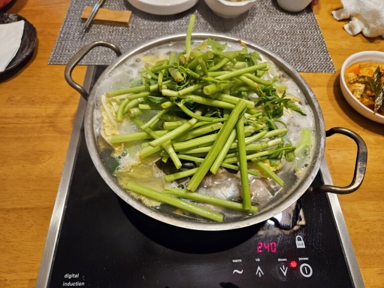 몸에 좋은 미나리가 듬뿍 들어가있고