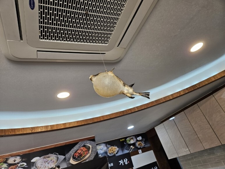 천정에 달려있는 복어가 귀엽네요 ㅋㅋ