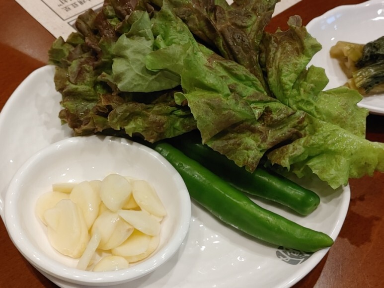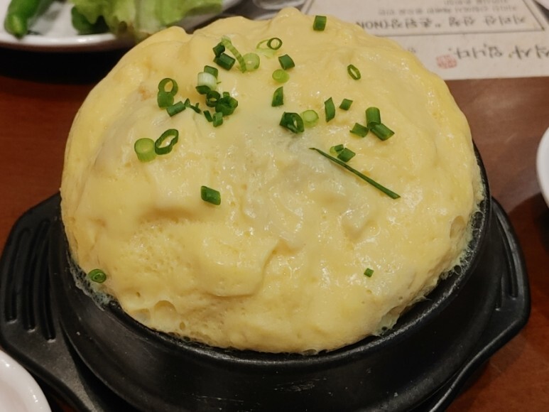 상추겉절이에 계란찜이 서비스로 나왔어요.