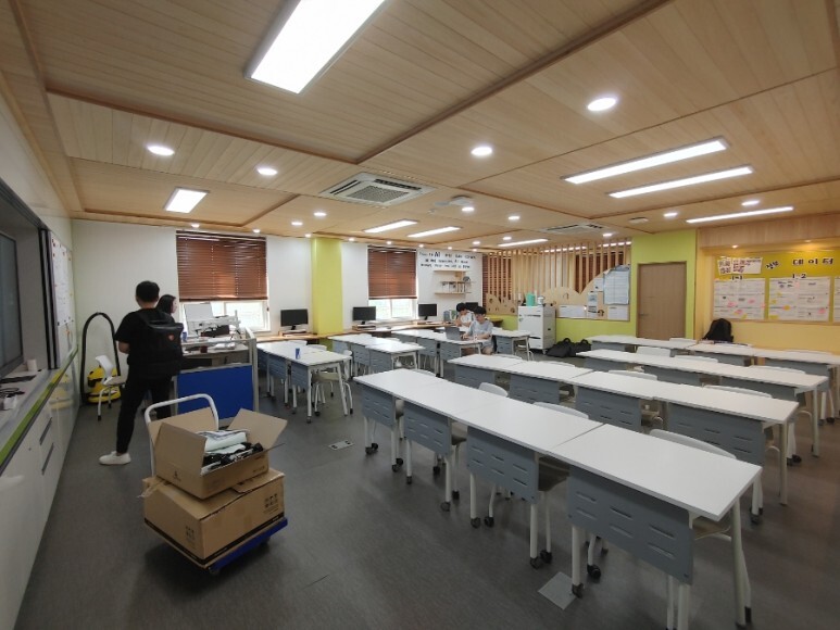 교실 한쪽에 꽂혀있는 코딩관련 책들