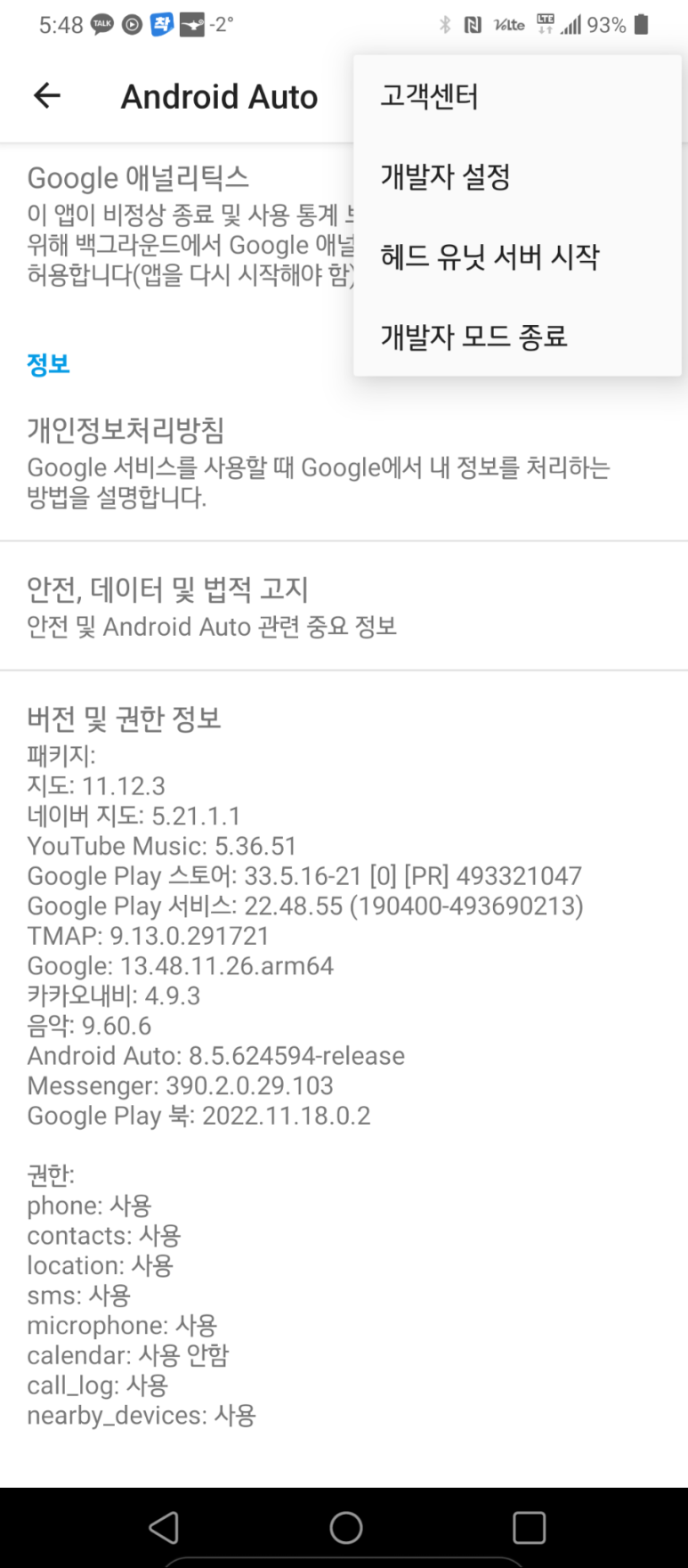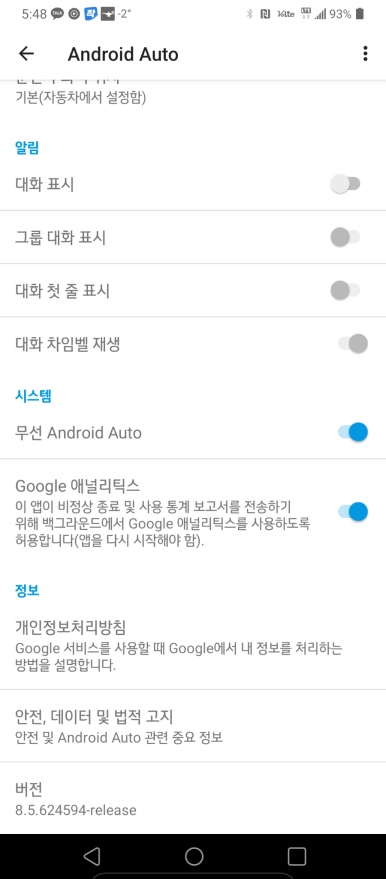 -> 안드로이드 오토 -> 분할 화면 사용이