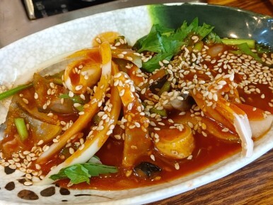 껍질은 쫀득쫀득한 식감이 좋아요.
