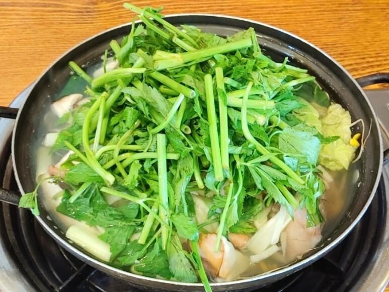 일단 미나리부터 살짝 데쳐서 먹구요.