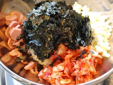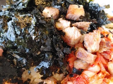 이렇게 치즈, 소세지, 김치, 김가루가 나오구요.