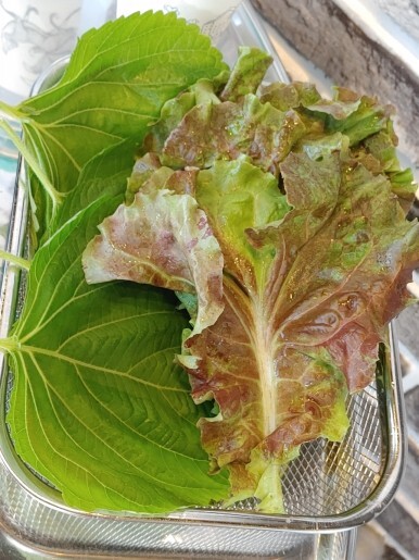 싱싱한 상추와 깻잎이 기본으로 나오고