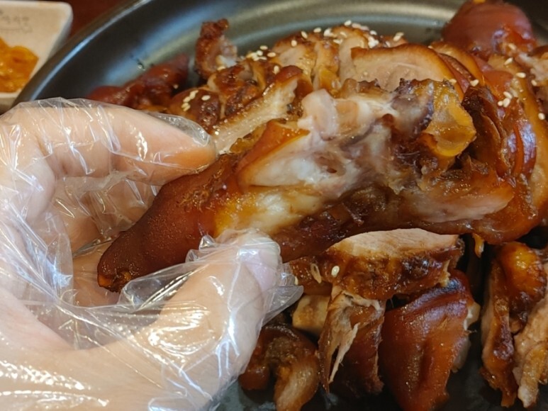 비닐 장갑 끼고 손으로 잡고 뜯어야 제 맛!
