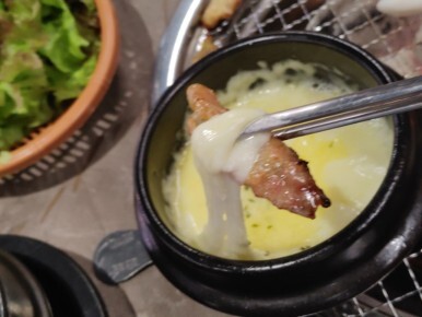 뚝배기를 불판에 살짝 올리면