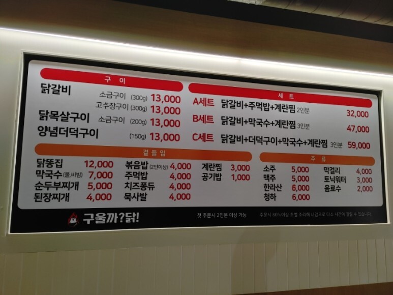 구울까닭숯불닭갈비도 좋은 선택인 것 같아요.