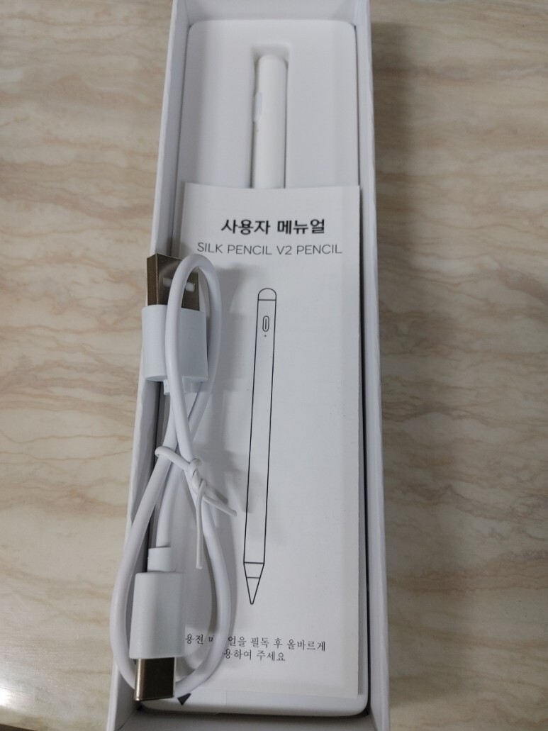 실크 펜슬, 충전 케이블, 메뉴얼 있구요.
