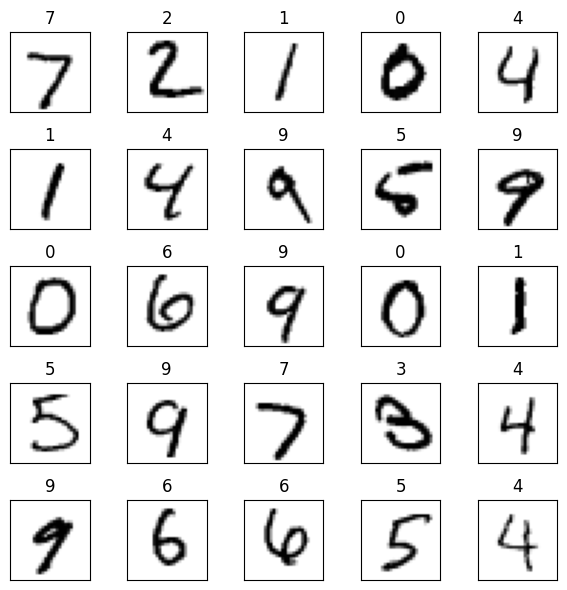 # 첫 25개의 이미지와 인식 결과 디스플레이