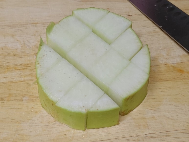 무는 깍뚝 썰기로 잘라주고요.