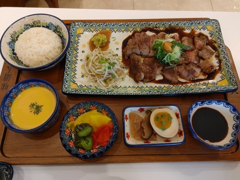 메인 메뉴인 가정식 등심 스테이크구요.
