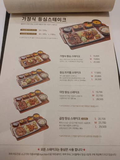 메인 메뉴인 가정식 등심 스테이크구요.