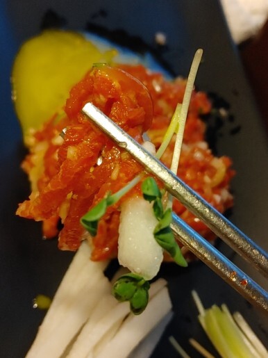 뷔페에서 먹던 냉동 육회랑