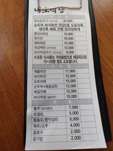 손두부, 바지락전, 젓갈2종, 도토리묵