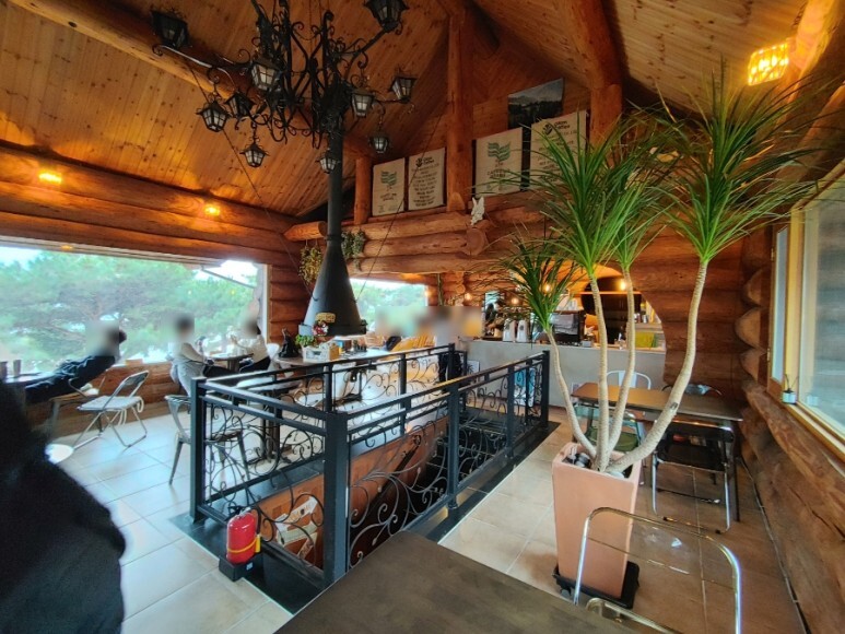 통나무로 지어진 카페라서