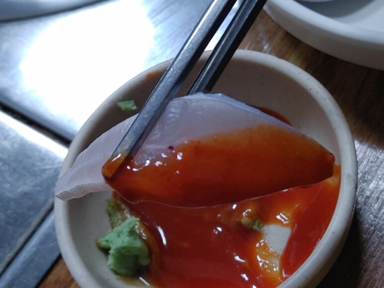 반찬으로 회가? 나옵니다.