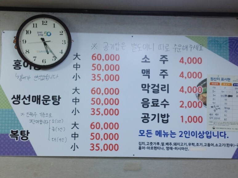 줄포식당 복탕은 지리와 매운탕