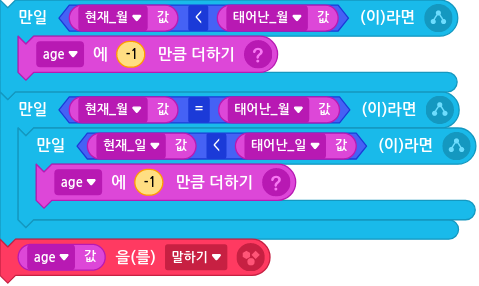 여기까지 엔트리로 만나이 계산기 만들기 끝