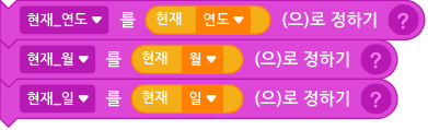 현재 연도, 월, 일 블록을 이용해서