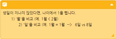 일단 '현재 월'과 '태어난 월'을 비교합니다.