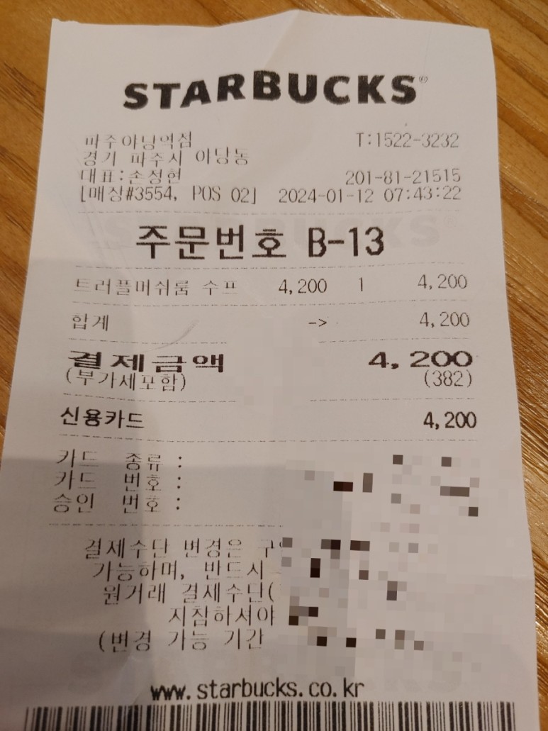 스타벅스는 일찍부터 오픈해서 좋아요.